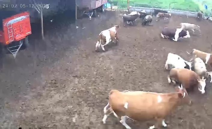 Amasya’nın Gümüşhacıköy ilçesinde meydana gelen 4,4 ve 4,2 büyüklüğündeki iki deprem insanlar kadar hayvanları da korkuttu. Karacaören köyünde bir çiftlikte bulunan ineklerin sarsıntı esnasında sağa sola kaçıştıkları görüldü. Yaşanan panik güvenlik kamerası tarafından kaydedildi.