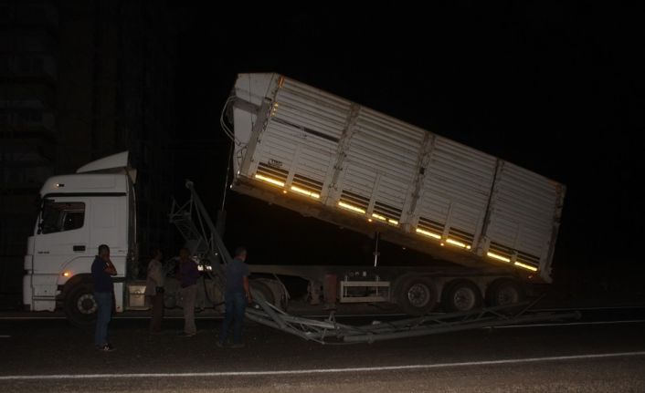 Gaziantep-Adıyaman karayolunda seyir halindeki bir kamyonun aniden açılan damperi, şehir polis kamerası direğini devirdi.