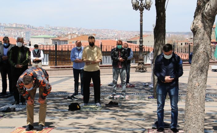 İçişleri Bakanlığının 23 Nisan’da vatandaşların araç kullanmamak kaydıyla ikametlerine en yakın camiye cuma namazı için gidebileceklerini açıklamasının ardından Hacı Bayram Veli Camii’ne gelen vatandaşlar, pandemi nedeniyle alınan tedbirlere göre namazlarını kıldı. Vatandaşlar, dezenfekte stantında ellerini dezenfekte ettikten sonra en yakınındaki kişiyle arasına iki metre mesafe koyarak saf tuttu.
