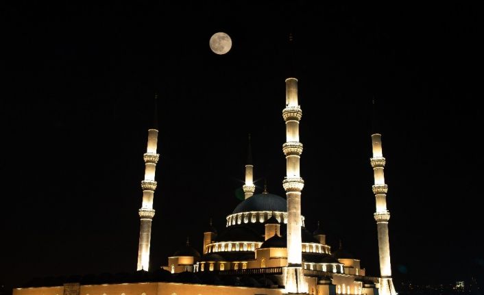 Ankara semalarında akşam saatlerinde beliren dolunay vatandaşlara görsel şölen yaşattı.