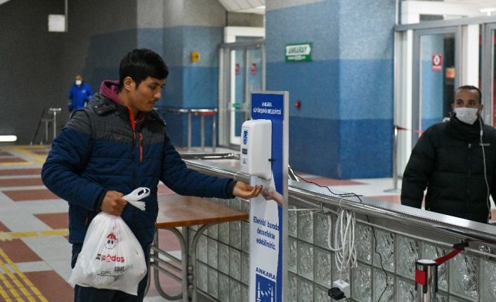 Ankara Büyükşehir Belediyesi tarafından korona virüse karşı alınan önlemler kapsamında metro, ANKARAY ve teleferik istasyonlarına el dezenfektan otomatları konulmaya başlandı. ANKARAY ve metronun Kızılay’da bulunan ortak istasyonuna montajı başlanan sensörlü el dezenfektan otomatları kısa süre içinde Başkent’teki toplam 43 metro, 11 ANKARARAY ve 4 teleferik istasyonunda 100 noktaya yerleştirilecek.