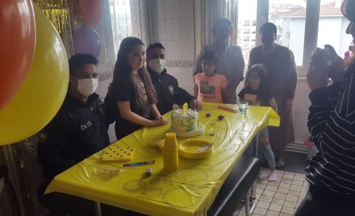 Bilecik’te korana virüs (Covid-19) tedbirleri kapsamında dışarı çıkma yasağı olan çocuk için anneannesinin isteği üzerine polis ekipleri pastalı doğum günü sürprizi yaptı.