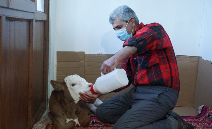 Annesi ölen ‘Garip’ isimli buzağıya, evlerinde gözleri gibi bakıyorlar