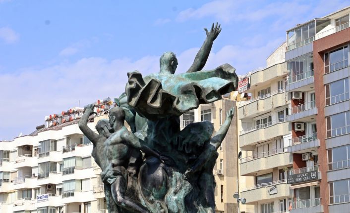 Antalya Cumhuriyet Meydanı’ndaki Ulusal Yükseliş Anıtı’nın rengi oksitlenerek beyaza dönüştü.