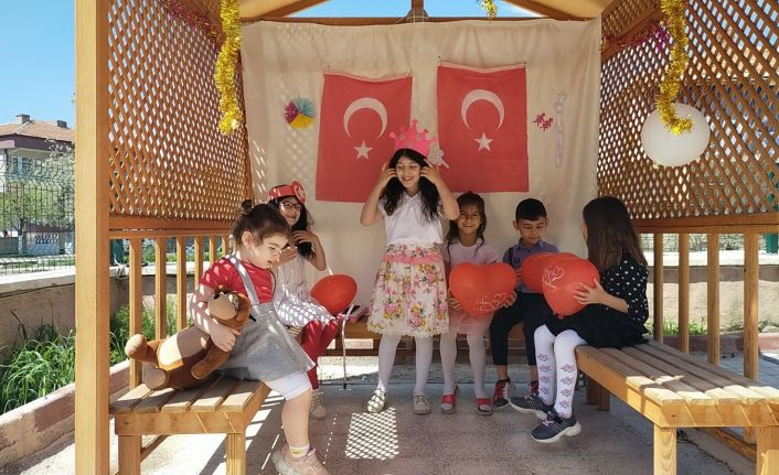 Çorum’un Osmancık ilçesinde bir grup çocuk, 23 Nisan Ulusal Egemenlik ve Çocuk Bayramı’nı oturdukları apartmanın bahçesinde kutladı.