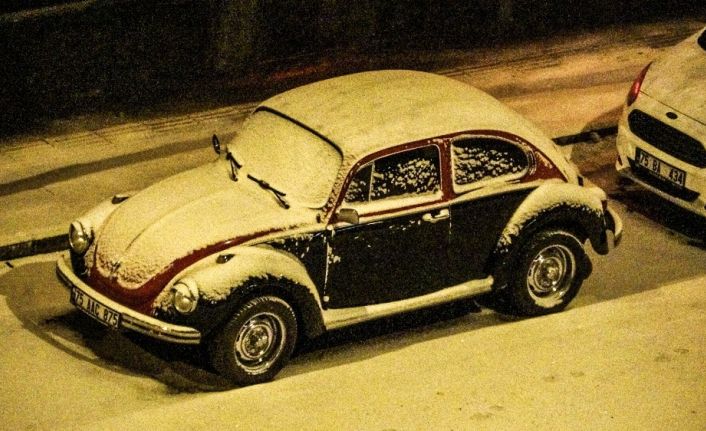 Ardahan’da akşam saatlerinde başlayan kar yağışıyla kent merkezi beyaza büründü.