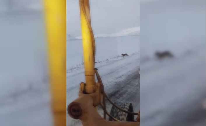 Ardahan’da karla mücadele ekipleri karayoluna inen kurt sürüsünü görüntüledi.