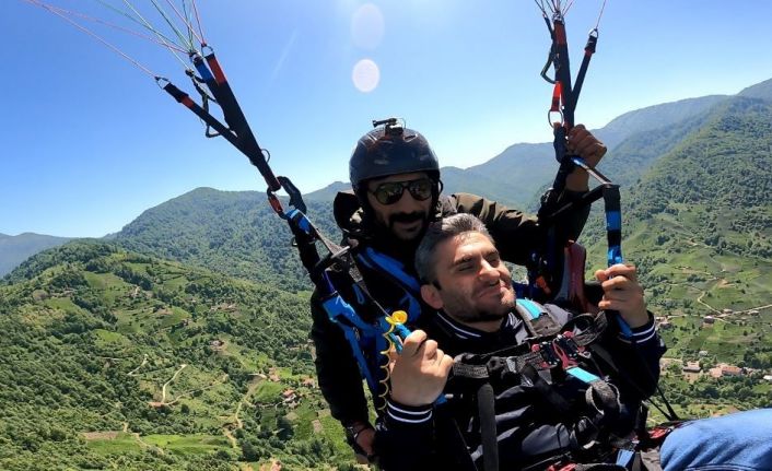 Artvin’in Kemalpaşa ilçesinde 910 rakımlı Cefuka Tepesinde düzenlenen etkinlikte, Türk Hava Kurumu, tecrübeli pilotları eşliğinde görme ve bedensel engelli dört vatandaş ilk kez tandem (ikili) atlayış heyecanı yaşadı.