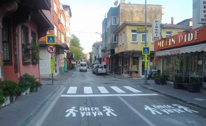 İçişleri Bakanlığı tarafından trafikte yaya önceliğine dikkat çekmek maksadıyla ülke genelinde yaya geçitlerine ‘Önce yaya’ yazıları yazılıyor.