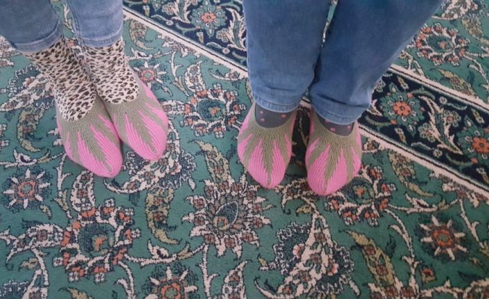 Kayseri’de korona virüs aşısı yaptırmak için camide bulunan sağlık çalışanlarının yanına gelen yaşlı kadın, havanın soğuk olduğunu söyleyen sağlık çalışanlarına kendi ördüğü patikleri hediye etti.