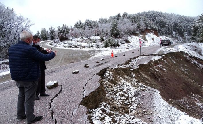 Kütahya’nın Hisarcık ilçesine bağlı Karaağıl köy yolunda aşırı yağış sonucu göçük ve derin çatlaklar meydana geldi.