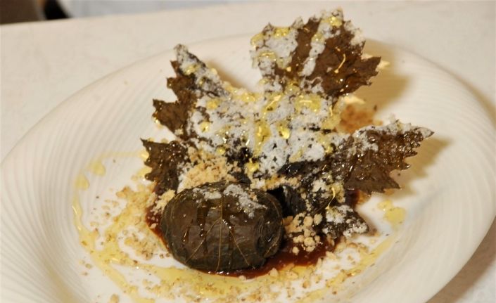 Yaprak tatlısının tarifini yapan Tunçer, “Tokat’ın salamura yaprağını ılık suda bekleterek tuzunu çıkartıyoruz. Daha sonra bal, yumurta beyazı ve cevizle yaptığımız iç harcını hazırlayarak yaprağımızı sarıyoruz. Daha sonra 180 derece fırında 10 dakika pişiriyoruz. Süslemesi olarak ise bağ yaprağının üzerine toz şeker serperek fırınlıyoruz 10 dakika içerisinde cips kıvamına geliyor. Tadına bakanlar mayhoş bir tat bekliyor ama ezberleri bozan bir lezzet olduğuna inanıyoruz” diye konuştu.