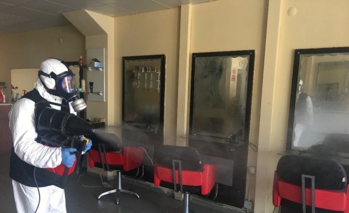 Ataşehir’de açılışa hazırlanan kuaförler dezenfekte edildi