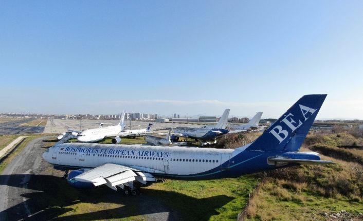 Atatürk Havalimanı apronunda bulunan uçuş ömrünü tamamlayan 9 uçak satışa çıkarılırken, uçaklar havadan görüntülendi.