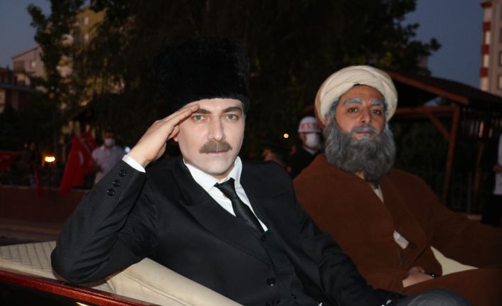 Sivas Kongresi’nin 102’nci yıl dönümü etkinlikleri kapsamında, Mustafa Kemal Atatürk’ün Erzurum’dan Sivas’a gelişi temsili olarak canlandırıldı.