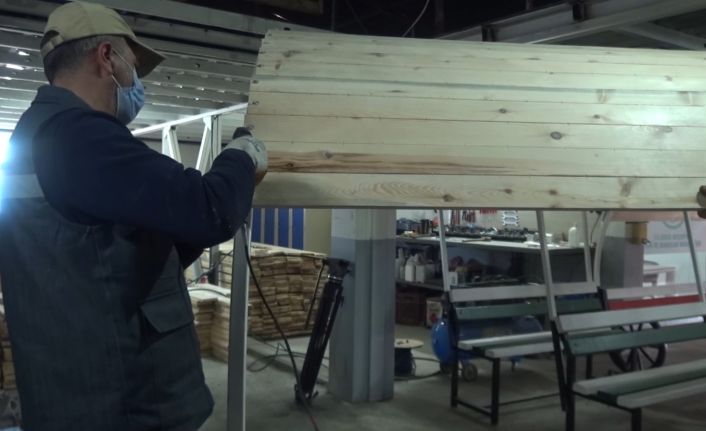 Erciş Belediyesi, depremde kullanılan ve daha sonra atıl durumda bırakılan konteynerlerden 252 metrekarelik bir atölye kurduk. Belediye bünyesinde bulunan hurdalıklardan elde edilen boru, profil, demir, tahta ve lastikler, atölyemizde yeniden değerlendirerek kamelya, oturma bankları, çöp konteynerleri ve saksıya dönüştürülerek halkın kullanımına sunuluyor. Bu yıl içerisinde 250 adet oturma bankı, 150 adet kamelya, 23 adet sıfır atık geri dönüşüm kutusu, 300 adet çatılı bank, 23 adet varillerden oturma bankı, çok sayıda lastikten çiçek saksıları ve 40’tan fazla da salıncak üreten belediye ekipleri, bunların yanı sıra 250 adet çöp kovası üreterek parklara yerleştirmeyi hedefliyor.