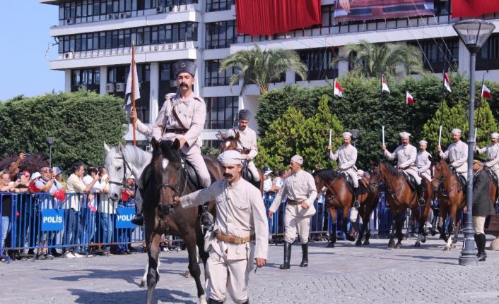 İzmir’in kurtuluşunun 97. yılı coşkuyla kutlanırken, Atlı Süvari Birlikleri’nin 9 Eylül’de İzmir’e girişi ve İzmir Valiliği binasında Türk bayrağını göndere çekişi canlandırıldı.