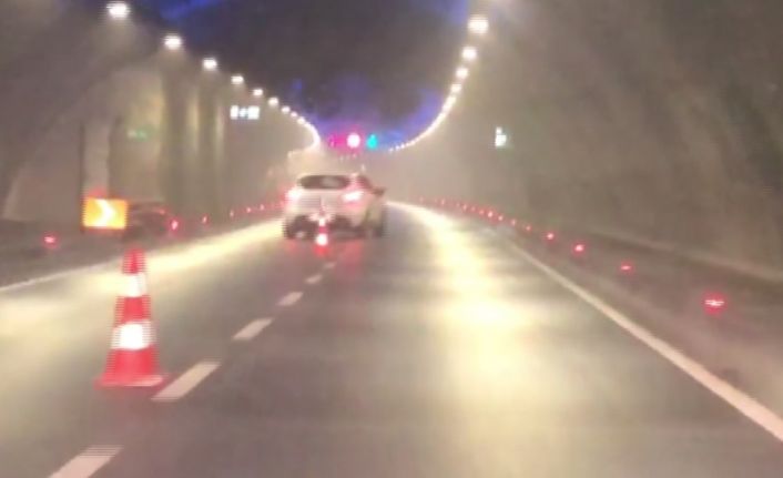 Avrasya Tüneli’nde şeritlerin arasına koyulan dubalara makas atan sürücü tehlike saçtı.