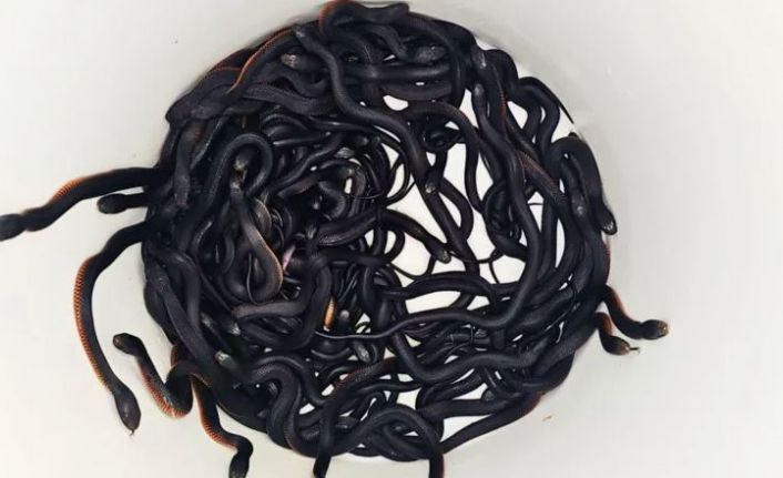 Avustralya’nın Sidney kentinde bir evin bahçesinde saman yığınlarının içinden zehirli yılanlar çıktı. Köpeğini bir yılanın ısırmasının ardından bahçesinde birkaç yılan gören ev sahibi, ekiplere ihbarda bulundu. Olay yerine gelen sürüngen kurtarma ekibi, saman yığınında onlarca yılan buldu. Ekipler yılanları çıkardığı sırada 4 yılan konulduğu torbanın içinde doğurdu. Ekipler, 97’si yeni doğan toplam 102 yılanı doğaya bırakmak üzere bahçeden çıkardı.