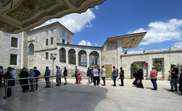 Ayasofya-i Kebir Cami-i Şerifi, dün kılınan cuma namazıyla birlikte 86 yıl aranın ardından yeniden ibadete açıldı. Yurtdışından ve Türkiye’nin farklı şehirlerinden, Ayasofya-i Kebir Cami-i Şerifi’ne gelen vatandaşlar ertesi günü soluğu Fatih Sultan Mehmet Türbesi’nde aldı. Türbede dua edebilmek için sıraya giren vatandaşlar uzun kuyruklar oluşturdu. Yeni tip korona virüs (Covid -19) tedbirleri kapsamında içeriye sırayla alınan vatandaşlar dua ettikten sonra türbeden ayrıldı.