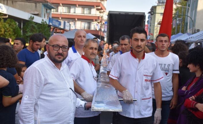 Aydın’ın Karacasu ilçesinde pidecilik yapan ustalar el ele verip 9 metre 17 santim uzunluğunda yumurta ve peynirli pide yaptı. Ustalar bu pideyi ve 4 metre 30 santim uzunluğundaki tahinli pideyi ilçede bu yıl 32.’si düzenlenen Afrodisias Kültür, Sanat ve Tanıtım Festivalinde sunup misafirlere ikram etti.