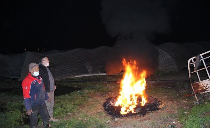 İlginç bir yöntem ile sera olan bölgedeki soğuğu kırmaya çalışan üreticiler, Aydın’da bu gece saat 24.00’ten sabah 07.00’ye kadar lastik, saman ve çeşitli malzemeler yaktılar. Rüzgarın durumuna göre sera bölgelerinin çevresinde ateşin yerini değiştiren çiftçiler, yüzlerce dönüm seranın üzerine yaktıkları ateşin dumanı ile kapatarak ortam sıcaklığını yükselterek don oluşumunu engellemeye çalıştılar.