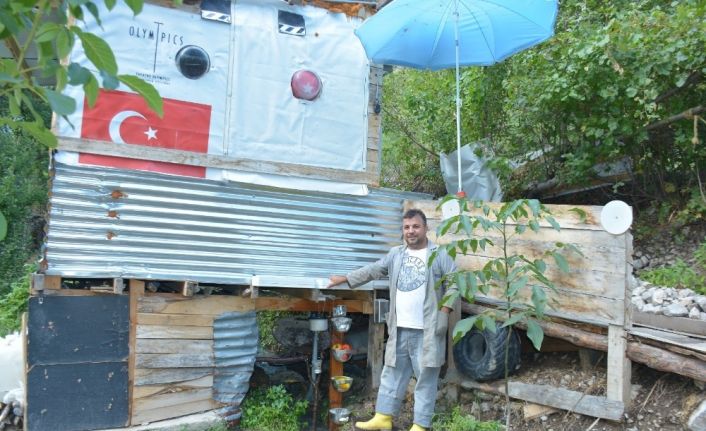 Tarlasını yabani hayvanlardan kurtaran düzenek için para harcamadığını kaydeden Özdemir, “Yabani hayvanlardan dolayı tarlam sürekli zarar görüyordu. Ektiğimizin karşılığını alamıyorduk. Bu düzeneği kurduktan sonra, ayı ve domuz gibi yabani hayvanlar tarlaya uğramadı. Bu düzeneği hurda malzemeleri toplayarak oluşturdum. Para harcamadım. Suyu da borular yardımıyla buraya taşıdım” diye konuştu.