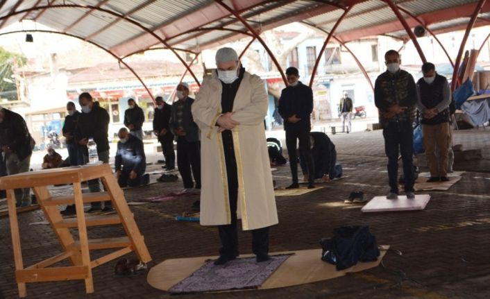 Ayvalık’ta kapalı pazar yerinde cuma namazında yağmur duası
