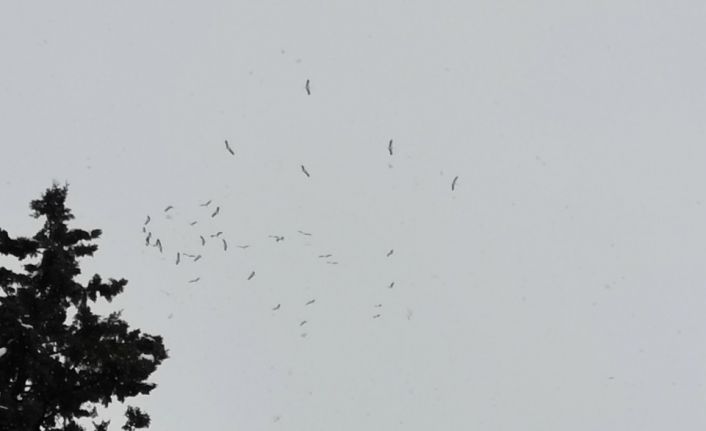 Her yıl baharla birlikte gelen leylekler bu yıl Bursa’ya kar yağışıyla geldi.