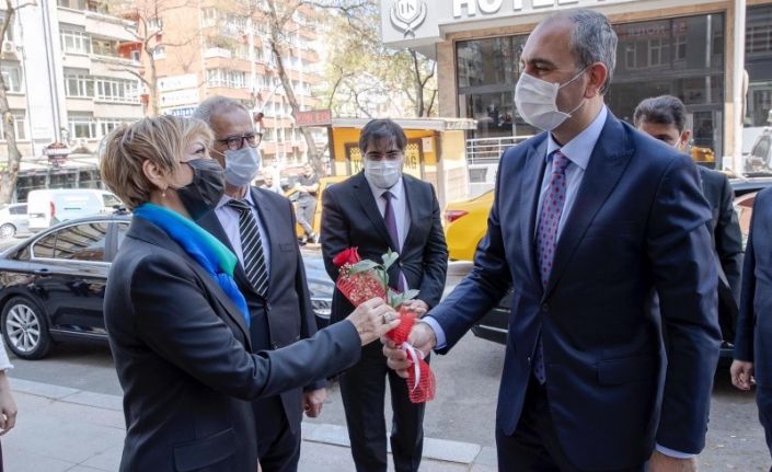 Ankara 54. Noteri Handan Baykam ve noterlik çalışanlarıyla bir araya gelen Gül, çalışmalar ve vatandaşlara verilen hizmetler hakkında bilgi aldı.