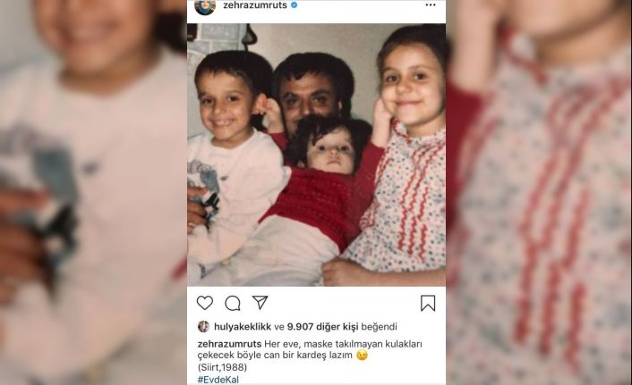 Aile Çalışma ve Sosyal Hizmetler Bakanı Zehra Zümrüt Selçuk, sosyal medya hesabından çocukluk fotoğrafıyla evde kal çağrısı yaptı. Siirt’te 1988 yılında çekildiğini belirttiği fotoğraf karesinde ailesiyle birlikte poz veren Selçuk, fotoğrafına ‘Her eve, maske takılmayan kulakları çekecek böyle can bir kardeş lazım’ notunu düştü. Selçuk’un Evdekal etiketiyle paylaştığı fotoğrafı kısa süre içinde binlerce beğeni aldı.