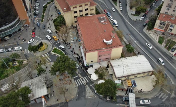 Bakırköy Dr. Sadi Konuk Eğitim ve Araştırma Hastanesi’nde yeni tip korona virüs (Covid-19) testi yaptırmak isteyen vatandaşların oluşturduğu metrelerce uzunluktaki kuyruk havadan görüntülendi.
