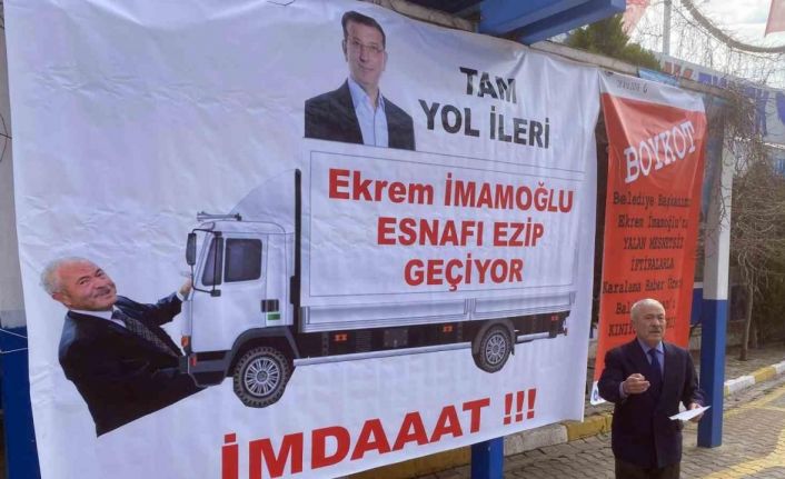 Türkiye Deniz Canlıları Müzesi kurucusu Balıkçı Kenan Balcı, İBB Başkanı Ekrem İmamoğlu tarafından arsalarına el konulduğunu ileri sürerek, dükkanının tamamına afişler asıp tepki gösterdi. En dikkat çeken afişi ‘Tam yol ileri, Ekrem İmamoğlu esnafı ezip geçiyor imdat’ olan Balcı, “Cumhurbaşkanı Erdoğan sevdalısı olduğumuz için bu zulümleri yaşıyoruz. İmdat diyorum, imdat” dedi.