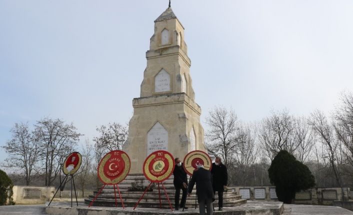‘26 Mart Balkan Şehitlerini Anma Günü’ dolayısıyla Sarayiçi’ndeki Balkan Şehitliği’nde düzenlenen törende, Edirne Valisi Ekrem Canalp ve il protokolü abideyi gezerek, şehit 100 subay ve 400 erin adının yazılı olduğu mermer taşların önüne karanfil bıraktı.