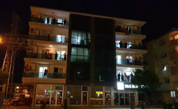 Balkonlara çıkan vatandaşlar hep bir ağızdan şarkı söyledi