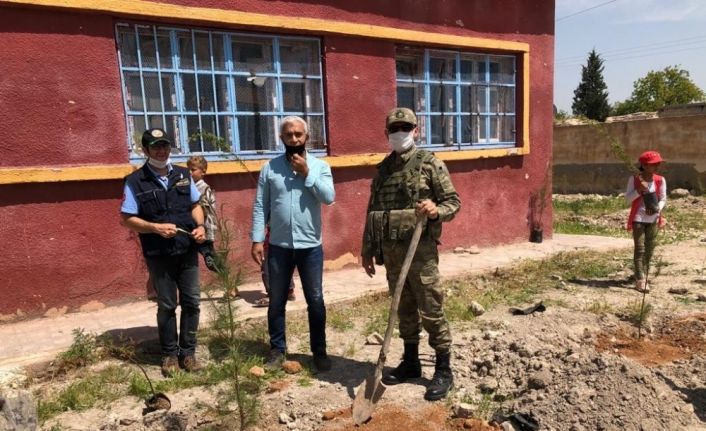Türk Silahlı Kuvvetleri İnsani Yardım Timi’nin destekleriyle yürütülen ağaçlandırma çalışmaları kapsamında Şanlıurfa İl Milli Eğitim Müdürlüğünün, Tarım ve Orman İl Müdürlüğünden temin ettiği 100 adet fidan, Türkiye Büyük Millet Meclisinin açılışının 100’üncü yıl dönümü hatırasına toprakla buluşturuldu. Salgın nedeniyle kapalı olan Telabyad Şarki İlkokulu bahçesine öğretmenler tarafından dikilen 100 adet fidanın sulama ve bakımını da aynı okulda görev yapan öğretmenler sağlayacak.