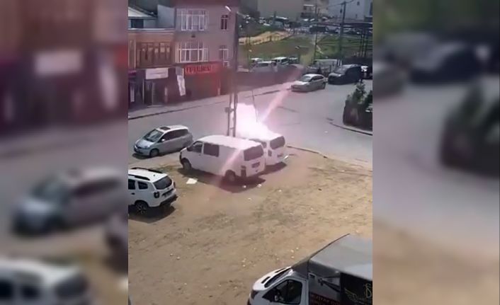 Başakşehir’de kısa devre yapan elektrik kabloları yanmaya başladı. Yanan kablolar koparak cadde ortasına düştü. Cadde ortasında bomba gibi patlayan teller cep telefonu kamerası ile görüntülendi.