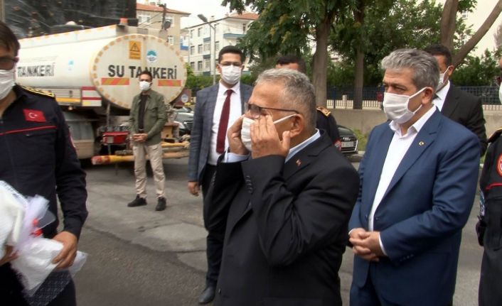 Kayseri Büyükşehir Belediye Başkanı Memduh Büyükkılıç, yangın bölgesinden dönen itfaiyecileri gözyaşları ile karşıladı.