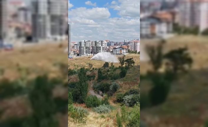 Ankara’nın Çankaya ilçesinde ana su hattındaki borunun patlaması sonucu sular metrelerce yükseğe fışkırırken, birçok mahallede su kesintisi yaşandı.