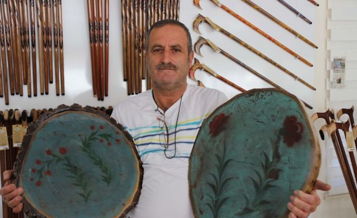 Yaptıkları tasarımları ebru sanatı yaparak reçine ile kaplayan Cumali Birol, özel siparişleri ile dikkat çekiyor. Aileden 3’üncü kuşak bastonculuk mesleğini sürdüren ve birçok ünlüye yaptığı bastonlarla gündeme gelen Cumali Birol, yaklaşık 2 yıllık bir çalışmanın ardından bastonla ebru sanatını birleştirdiğini, bununla yetinmeyerek, epoksi kullanarak ceviz kütüğünden zigon sehpa ürettiklerini söyledi. Bu şekilde baston yapımında kullanılan ve atık duruma gelerek yakacak olarak kalan ceviz kütüklerini de üretime kazandırdıklarını ifade eden Birol, bir taraftan doğayı korumak, diğer taraftan müşterilerin farklı süs eşya siparişlerine cevap vermek için çalıştıklarını belirtti. Birol, “Ben aileden 3. kuşak baston imalatı yapıyorum. Son birkaç yıldır baston imalatından artan ve sobalarda yakacak olarak kullandığımız ceviz kütüklerini üretime kazandırmak için neler yapabiliriz diye bir araştırma yaptım. Yaptığımız araştırmalarda, üzerine ebru sanatı yaparak ve epoksi dökerek ortaya farklı bir hediyelik eşya çıkardık. Bunu fuar ve festivallerde tanıtmaya başlayacağız” dedi.
