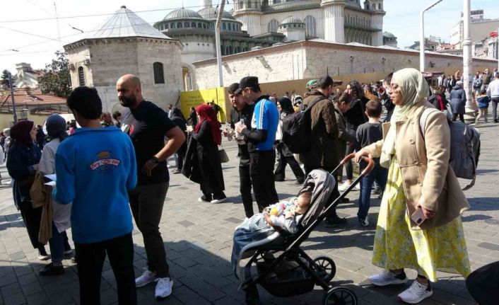 Bayram tatilini ve güzel havayı fırsat bilen vatandaşlar soluğu Taksim’de aldı.
