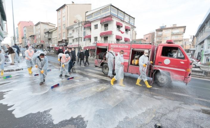 Korona virüsle mücadele kapsamında Nevşehir Belediyesinin şehri yıkamasının ardından Niğde Belediyesi de şehrin caddelerini yıkadı.