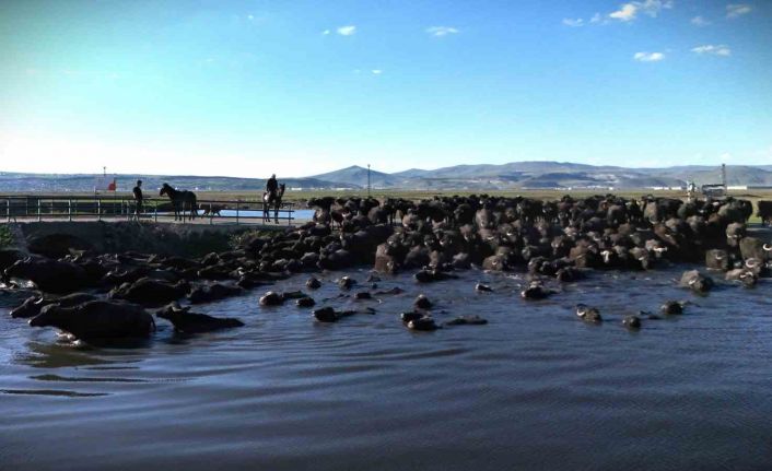 Kayseri’de deniz seviyesinden yaklaşık bin 73 metre yükseklikte yer alan ve Avrupa, Asya ve Afrika kıtalarından geçen göç rotası üzerinde bulunan Hürmetçi Sazlığı’nda mandaların sağım yolculuğu, Afrika’da çekilen belgeselleri aratmıyor.