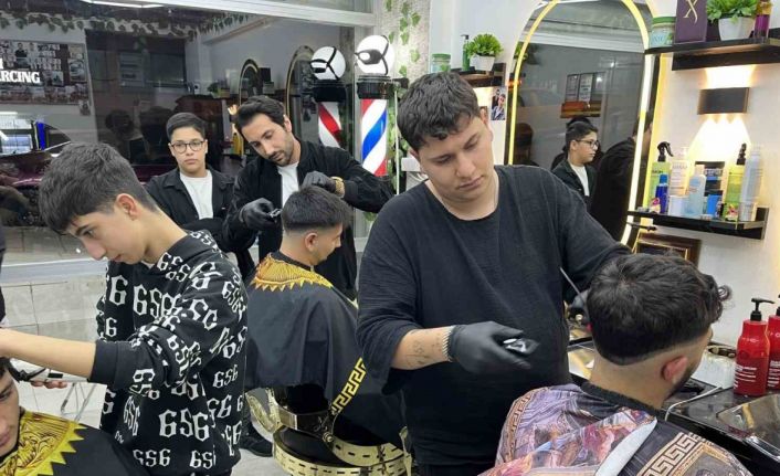 İşletme çalışanı Umut Sayar, "Sabahtan bu yana 25-30 tıraş oldu, bir o kadar daha randevumuz var. Sıfır hata ile hizmet vermeye çalışıyoruz yorgun olsak da. Kolay bir iş değil" dedi.