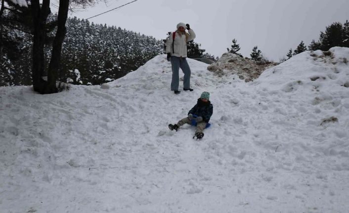 Bolu’nun gözde turizm merkezi olan ve beyaz örtüyle kaplanan Abant Tabiat Parkı hafta sonu tatilcilerin akınına uğradı.