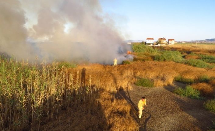 Çanakkale’nin Biga ilçesinde sazlıkta çıkan yangında 1 hektar alan yanarak zarar gördü.