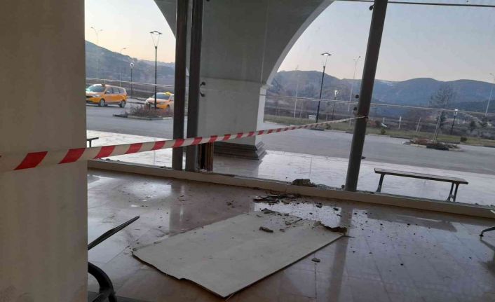 Bilecik Şehirlerarası Otobüs Terminalinin alçı tavanı çökerken koca parça şans eseri kimseye isabet etmedi.