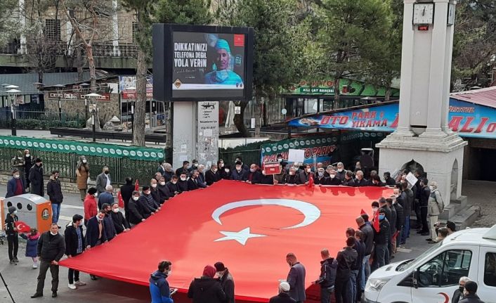 Bölücü terör örgütünün Kuzey Irak’ın Gara bölgesindeki bir mağarada 13 masumu şehit etmesi nedeniyle tepki gösteren Bingöl Şehit Aileleri Gazileri ve İnsan Hakları (BİŞHAK) Derneği, merkez Genç Caddesi saat kulesinin önünde toplandı. Vatandaşların da destek verdiği basın açıklamasında teröre tepki gösterilerek, Türk bayrağı açıldı.