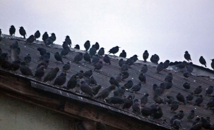Hakkari’nin Yüksekova ilçesindeki evlerin çatılarında sürü halinde bulunan sığırcıklar ilginç görüntüler oluşturdu.