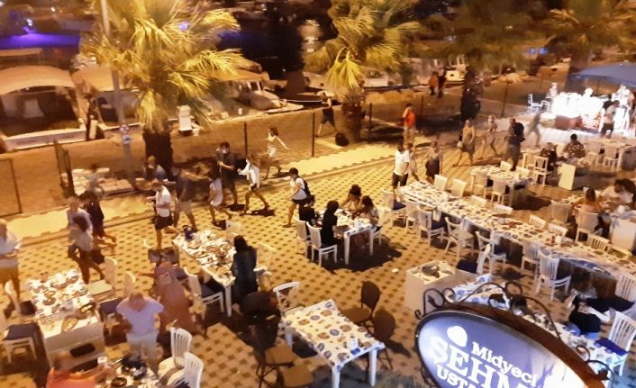 Gündoğan mahallesinde restoran sahibi Eyüp Özay ise bir andan bastıran yağmur nedeniyle müşterilerinin restoran girdiklerini söyleyerek “Bir andan yağmur bastırdı, misafirlerimizi içeri almak zorunda kaldık ama maske zorunluluğun da içeri aldık. Misafirlerimizin çoğu içeri mekanımızda. Bir andan içeri giren misafirlerimize mesafelerine dikkat etmelerini, maskelerini takmalarını istedik. Şu anda şiddetli bir yağmur var. Bütün masalarımızı boşalttık” dedi.